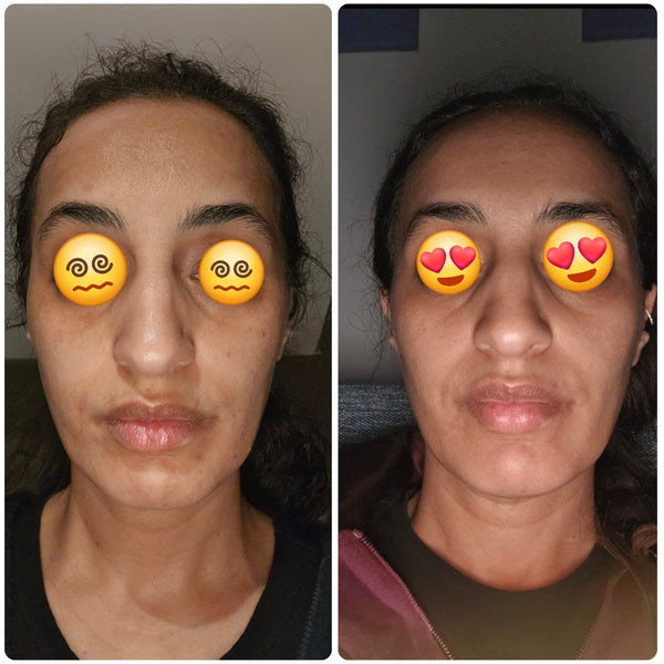 Les photos avant-après obtenues après utilisation de notre masque au Curcuma